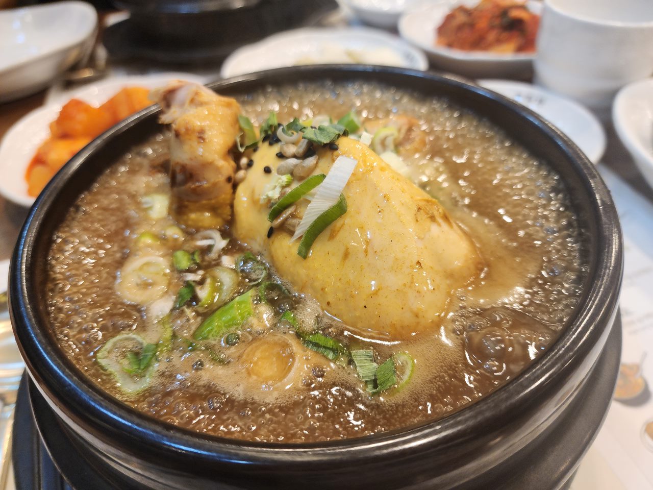 삼계탕은 닭고기와 인삼, 대추, 마늘이 어우러진 고단백·저지방 보양식입니다. 국물이 진하고 담백하기 때문에 자극적이지 않은 반찬이 잘 어울립니다.
